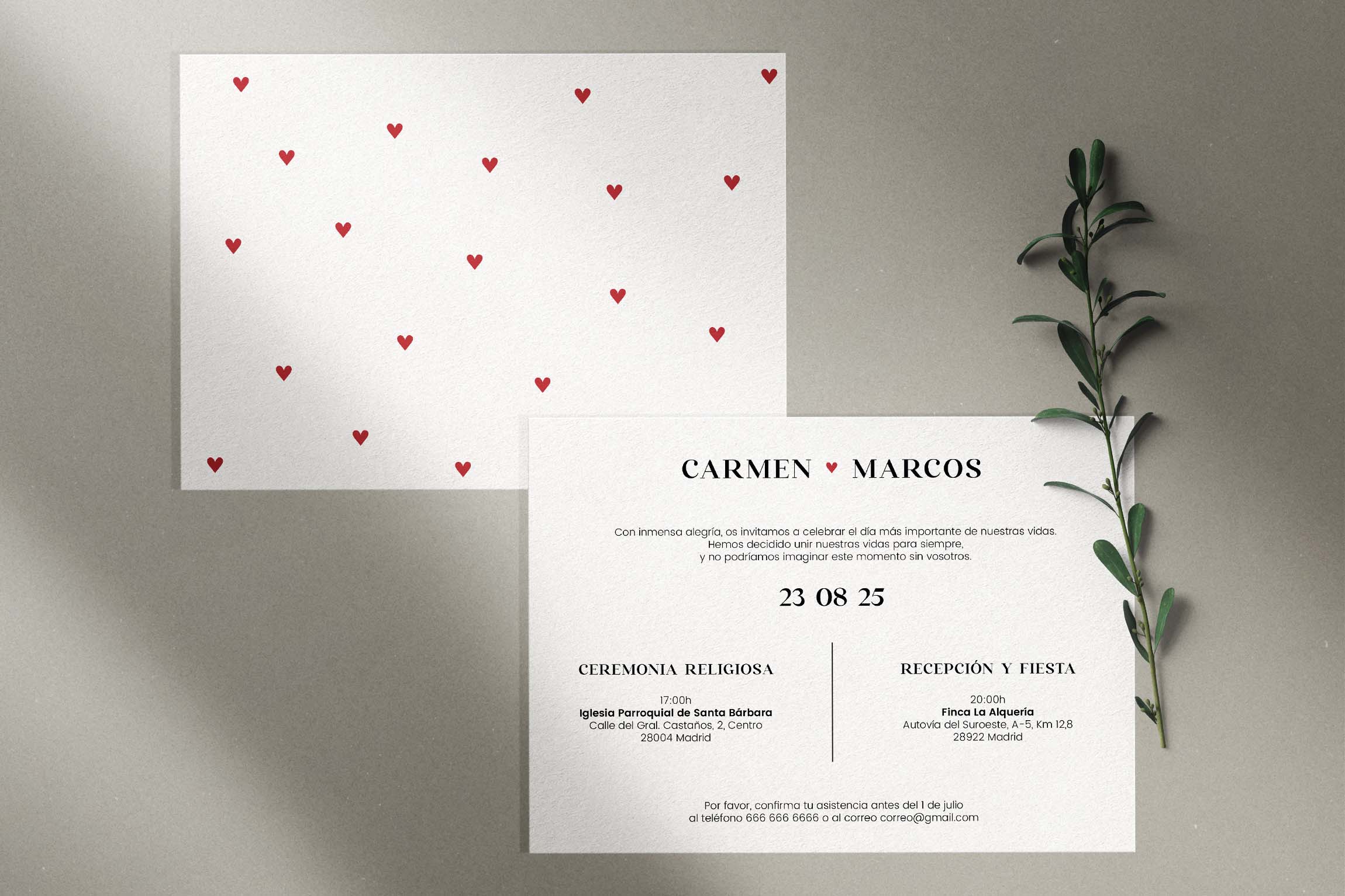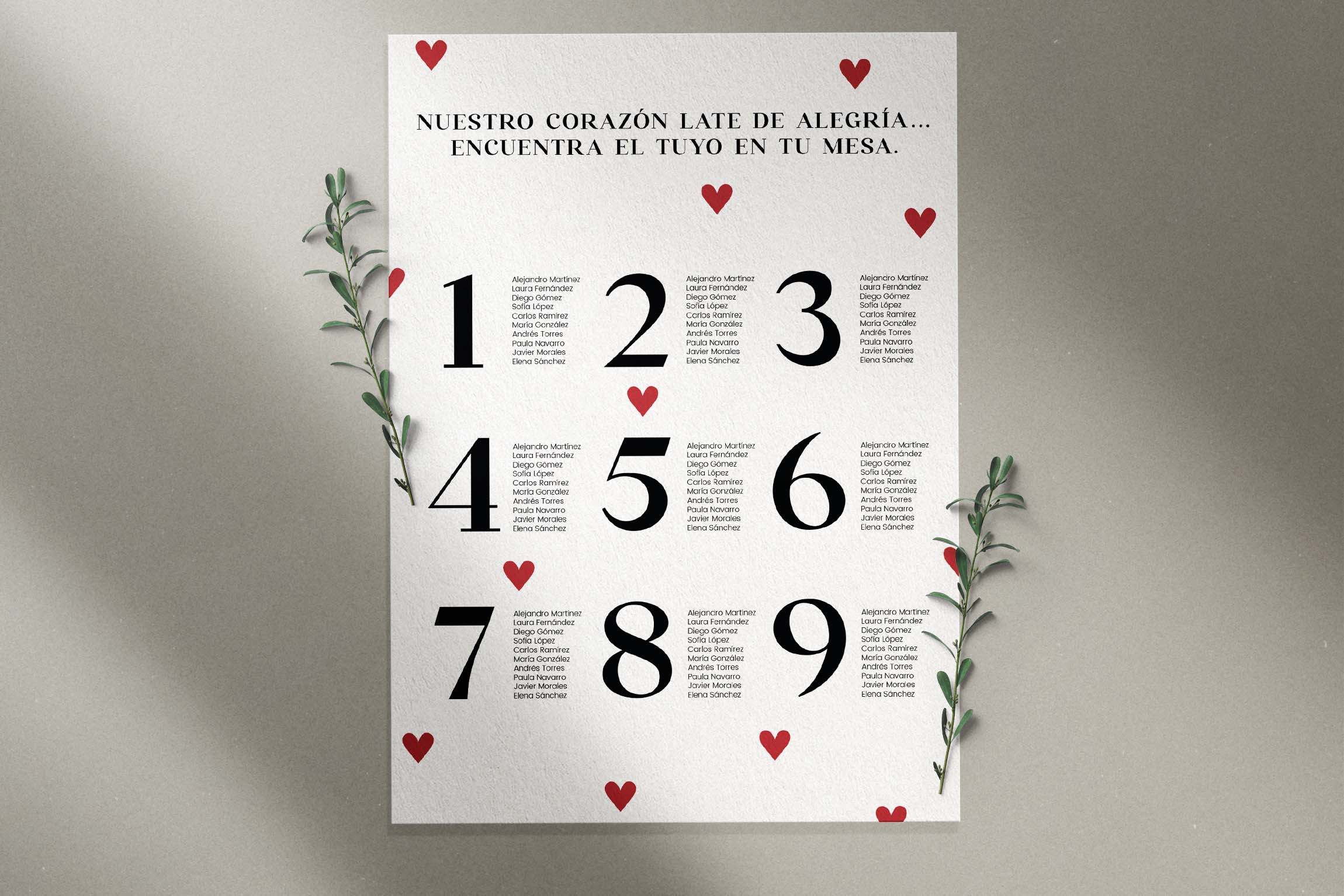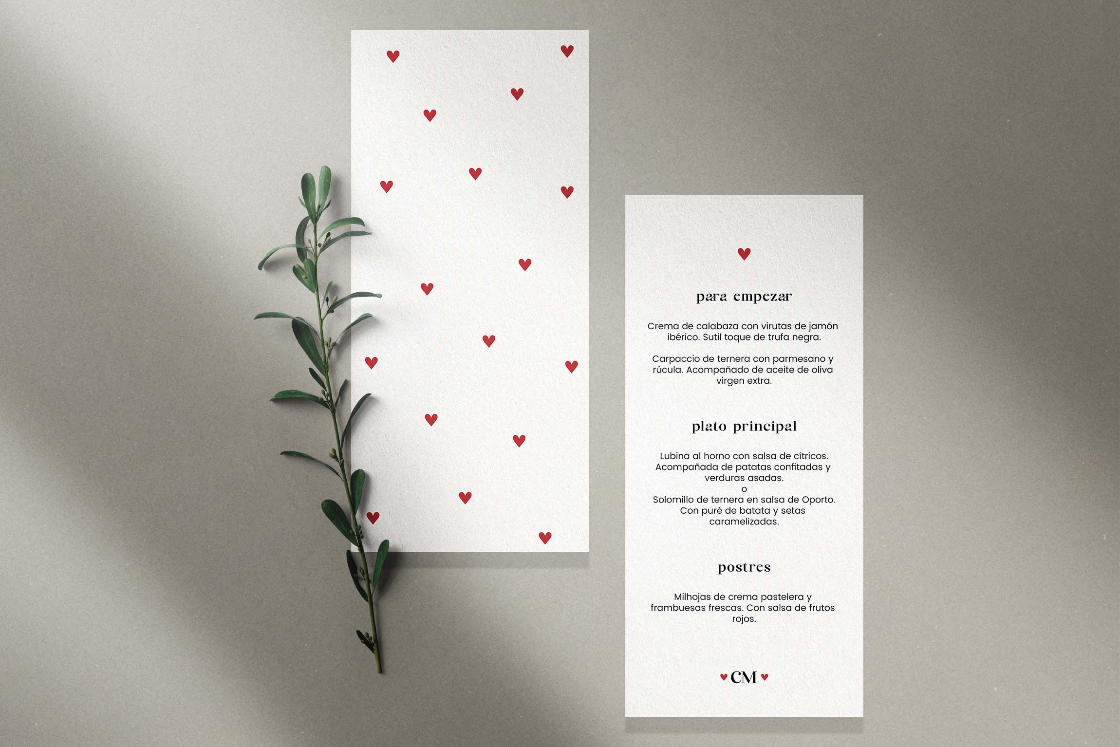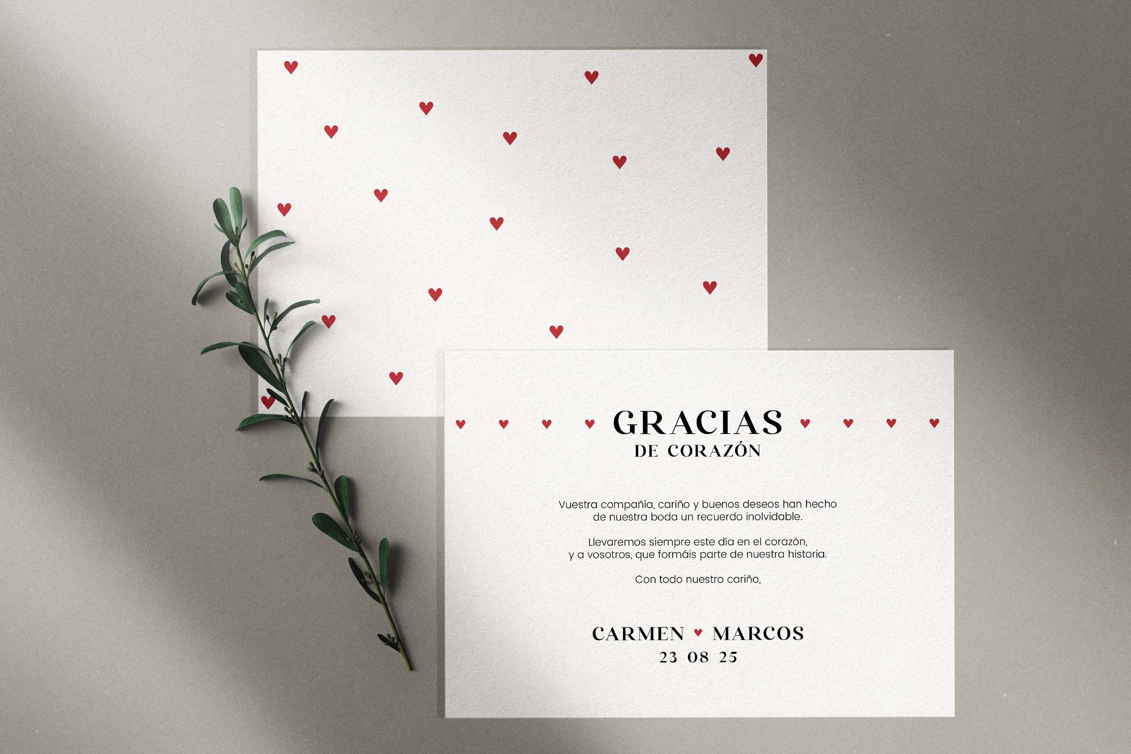 con pequeños corazones rojos, símbolos sutiles del amor que une cada detalle. La combinación de
